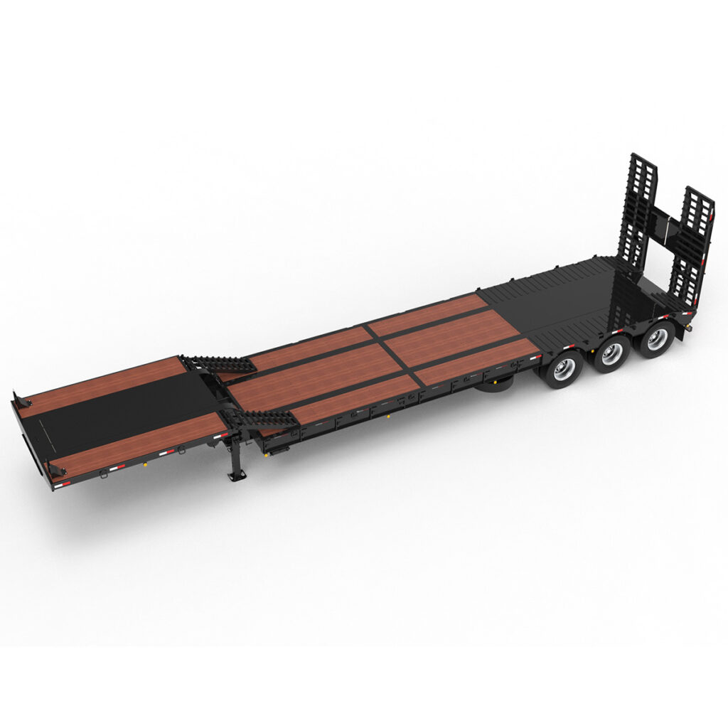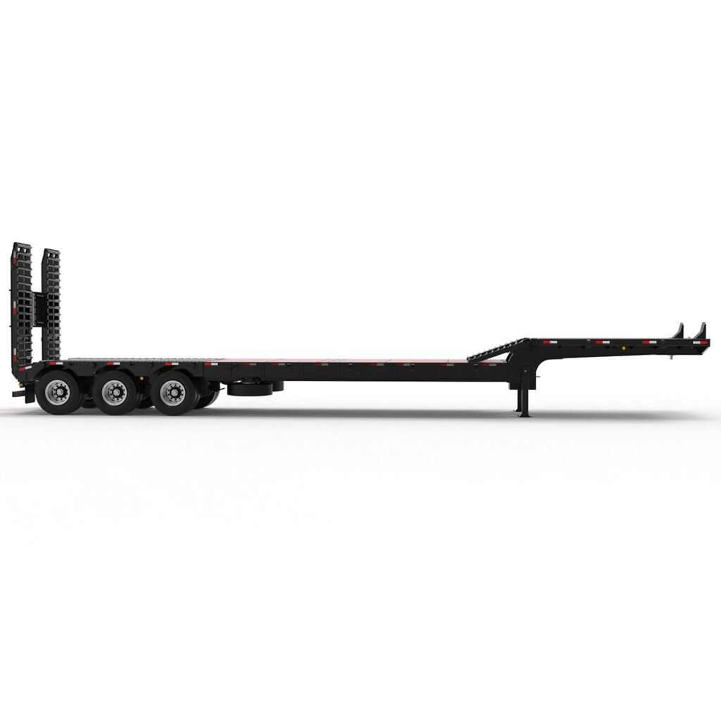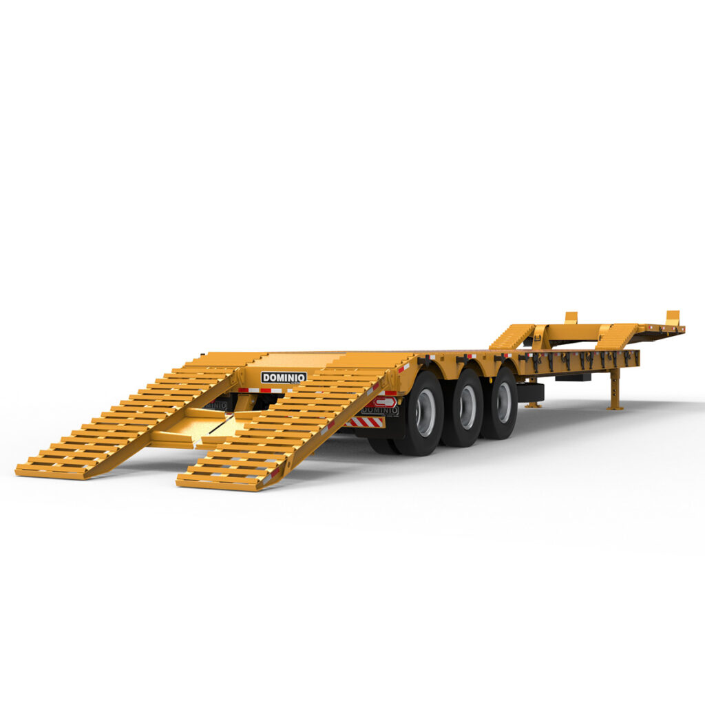 Chassi construído em perfis de aço estrutural com longarinas viga “I”, travessas passantes e fechamentos laterais perfil em “U”. Pino-rei flagelado 2” (50,8mm), conforme NBR 5548. Apara-barro de borracha na traseira. Para-choque fixo conforme resolução CONTRAN 152/2003 e Portarias 11/2004 e 18/2007. Instalação elétrica 24 (LED), conforme normas do CNT. Apoio de levantamento manual com alças e pinos removíveis para regulagem de altura.